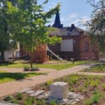 Für besondere Anlässe wie Open-Air-Gottesdienste wurde außerdem eine kleine Bühne integriert, die dem Garten auch eine kulturelle und spirituelle Funktion verleiht.